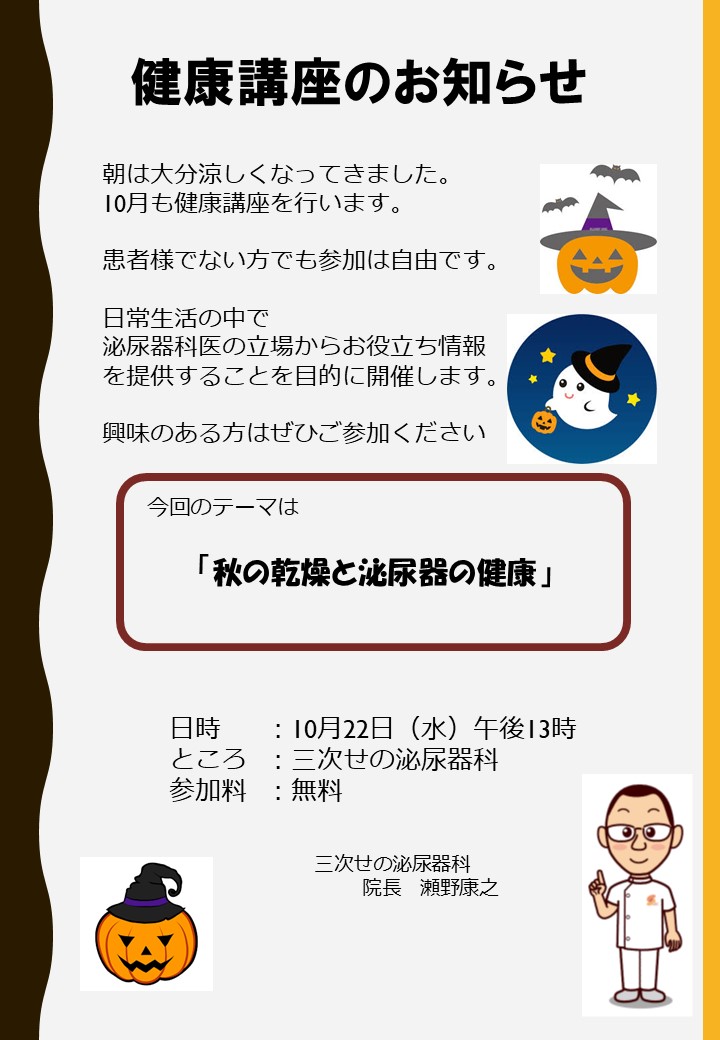 テーマは「秋の乾燥と泌尿器の健康」としております。
